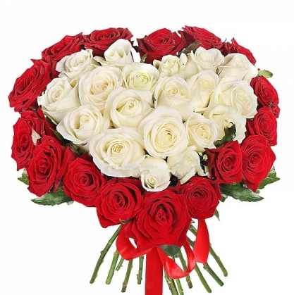 Сердце из белых и красных роз | Фото и цена букета в Мадриде